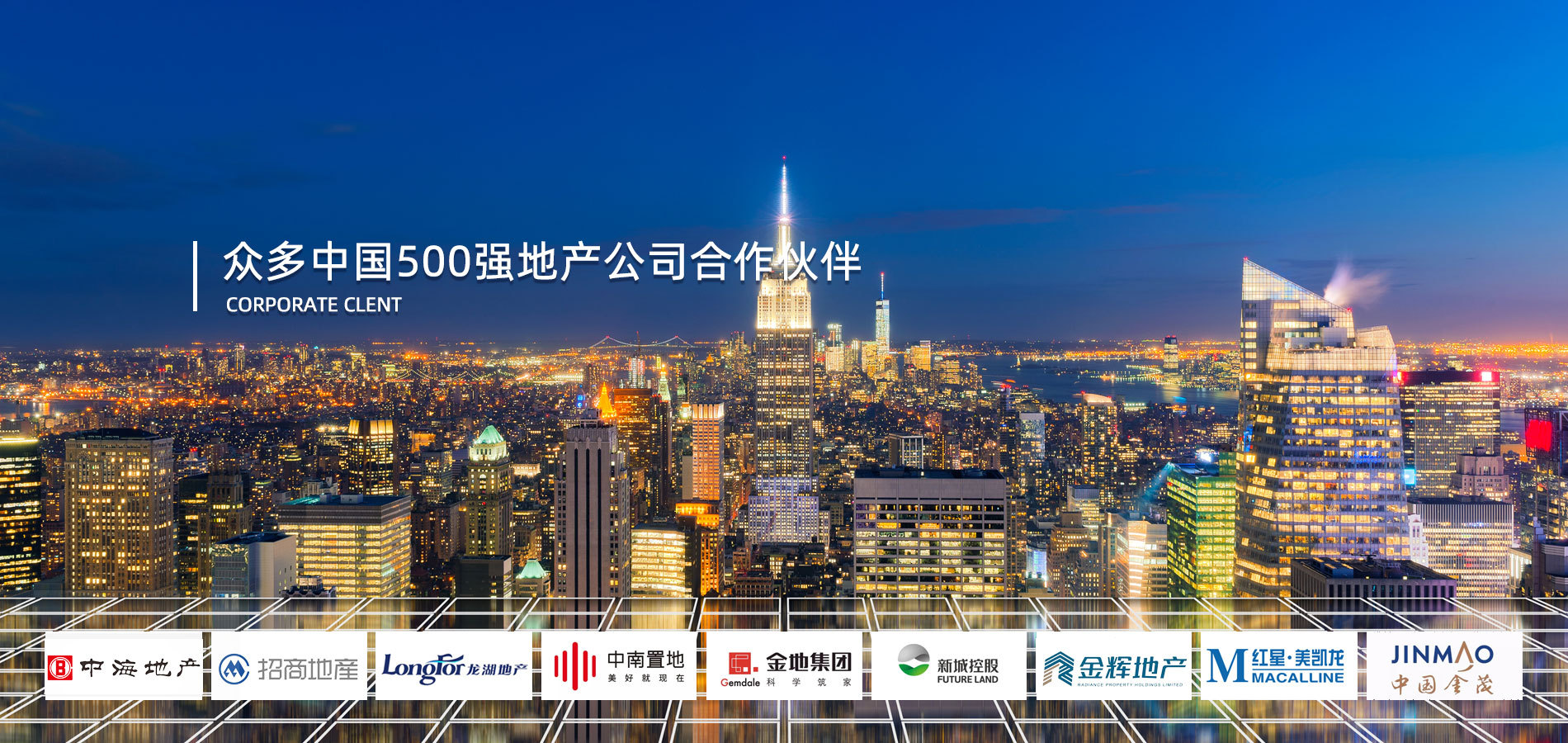 現已與中海地產、招商地產、龍湖地產、中南置地、金地地產、新城集團、紅星美凱龍地產、奧克斯地產、金茂地產等一批中國500強地產公司合作。